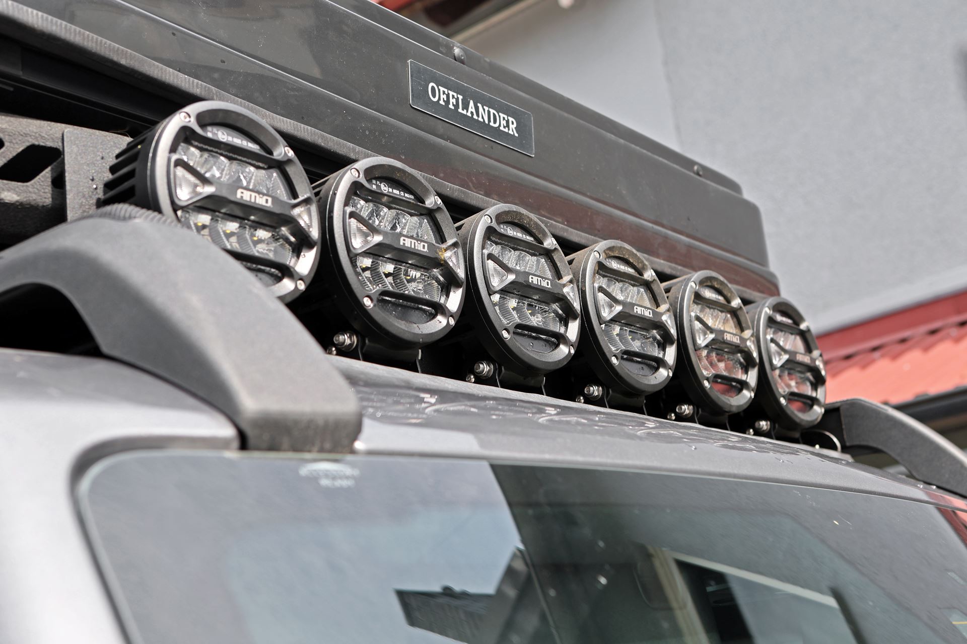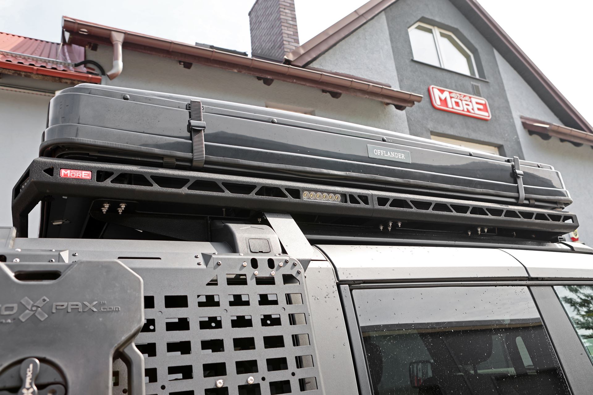 – bagażnik dachowy More 4×4 z namiotem dachowym Offlander oraz reflektorami Amio – gotowość do biwakowania i nocnych wypraw,