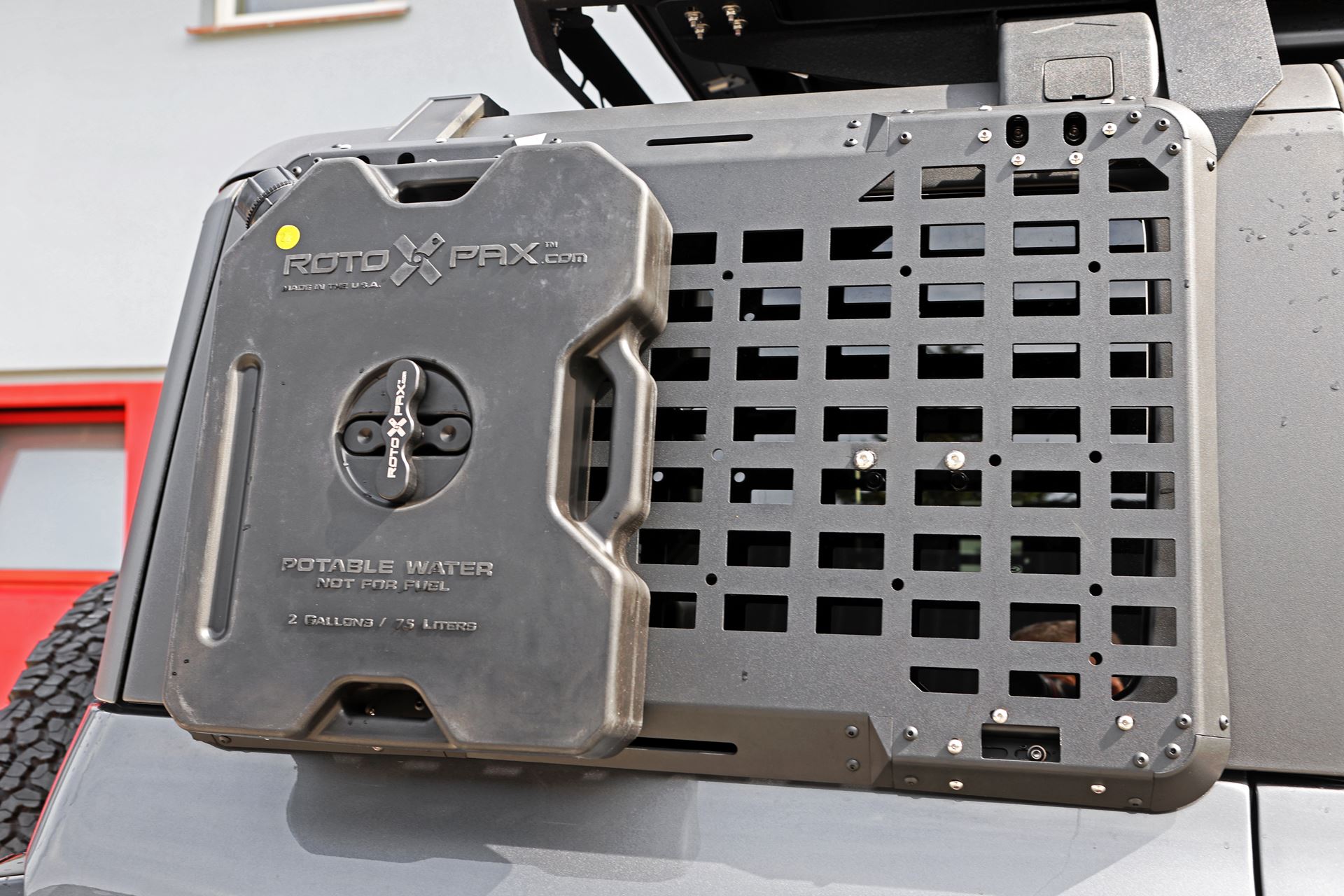 – kratka typu Molle z kanistrem Rotopax – praktyczne rozwiązanie na dodatkowy ekwipunek,